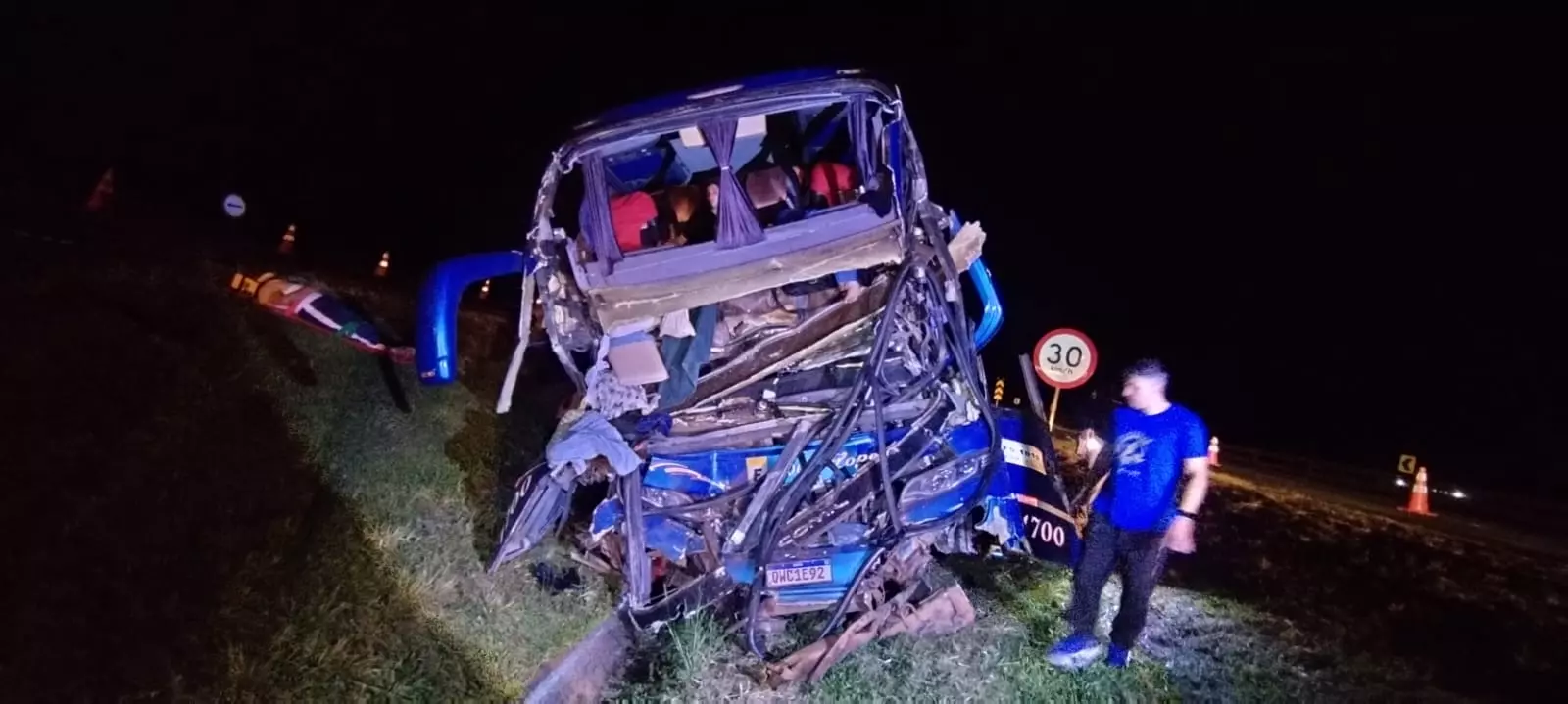 Um acidente ocorrido na madrugada desta segunda-feira (28) na BR-050, em Uberaba, deixou duas pessoas mortas e outras 33 feridas. Por volta da meia-noite, um ônibus com 60 ocupantes colidiu contra a traseira de um conjunto veicular no Km 152 da rodovia.