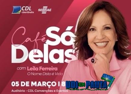 A CDL Uberlândia vai realizar, no dia 5 de março, uma edição do evento Café Só Delas conduzida pela escritora Leila Ferreira. A atividade está marcada para quarta-feira, com início às 8h, e integra a programação organizada pela entidade no mês em que se celebra o Dia Internacional da Mulher.