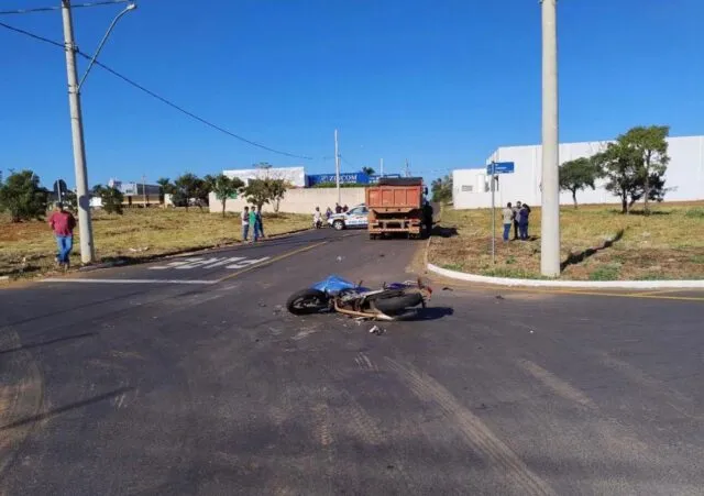 Motociclista morre após colisão lateral com caminhão no bairro Amorim, em Araguari