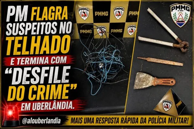 Por volta de 1h29 da madrugada desta segunda-feira, 27, a Polícia Militar prendeu dois suspeitos que tentavam furtar fios de energia e ferramentas na rua Armando Tucci, em Uberlândia. Segundo a ação, o telhado do imóvel foi utilizado pelos envolvidos como passagem para a prática do crime.